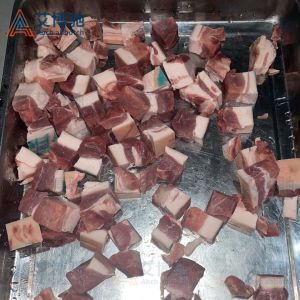 艾博馳ABCH-13A禽肉類剁塊機適合禽類,魚類的剁塊,剁段需求,輸送裝置采用單片食品級PE材質膠板設計,可單片更換,非常方便,壓料輸送裝置采用針式鏈條設計,有效防止物料打滑后退或輸送不均勻等弊端。丁刀組丁刀刀距寬度可定制規格(2cm、2.5cm、3cm、3.5cm)等,標配3CM,最小2cm,實際成品小于丁刀刀距0.2cm,長短1cm-5cm可調,物料需冷凍,效果更佳!