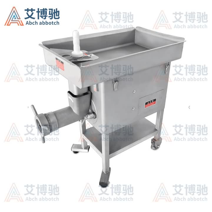 艾博馳JRJ-32S三網雙刀絞肉機采用優質SUS304不銹鋼制作。傳動方式為直接傳動,無皮帶,無鏈條,扭力大。絞肉管+輸送螺桿+螺帽材質+機械表面SUS304。噴砂露面處理,可避免長時間視覺疲勞;絞網瑞士進口;雙面絞刀為德國進口;馬達過載自動停機自動復位功能;三網雙刀型和傳統單刀單網型比較;單網單刀型一次性切削阻力大,絞磨時間長,肉升溫容易變質;三網雙刀型采用粗中細三個絞網切削,絞肉細又漂亮,縮短時間,肉不易變質;經大小不同孔板進行分割絞肉,保持肉的顆粒口感和肉的觀感度。
