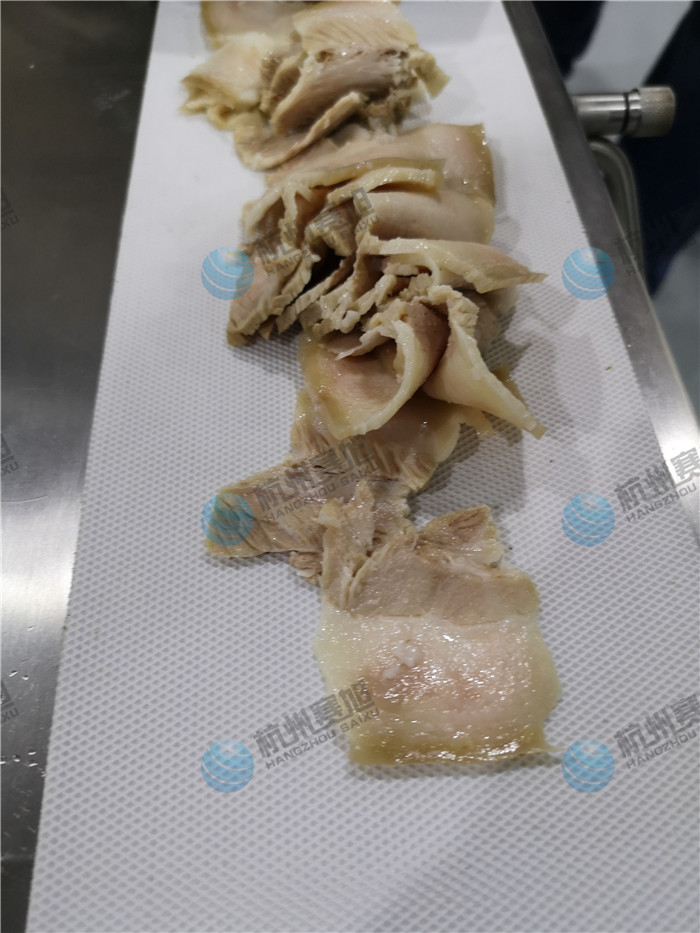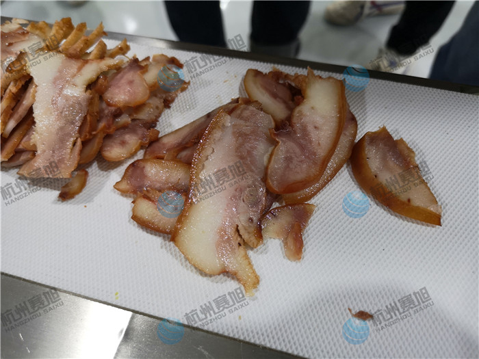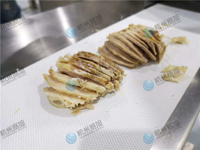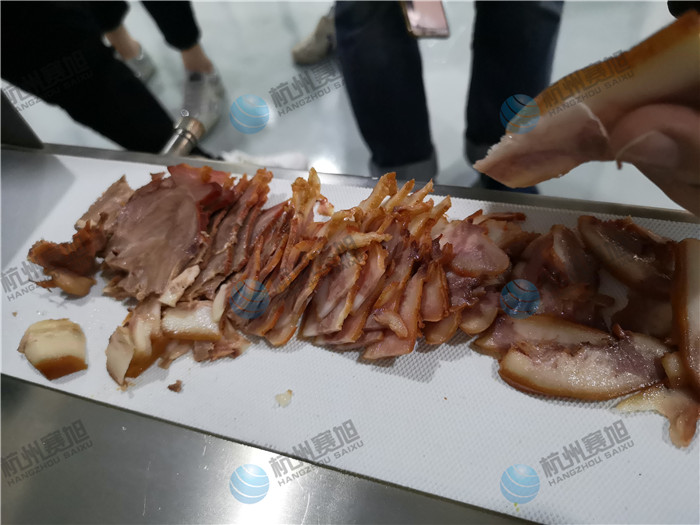 杭州賽旭熟肉切片機,也叫多功能熟肉切片機,它能將能將叉燒肉、臘肉、五花肉、牛肉、鹵味、熟肉類以及一些根莖類蘿卜,土豆,黃瓜,蓮藕,辣椒,苦瓜,絲瓜,西葫蘆等切成片形狀,設備采用SUS304不銹鋼材質,經久耐用,食品級傳輸皮帶;熟肉切片機咨詢熱線:400-885-2117,該設備提供免費來廠試機服務,您只需帶上物料即可
